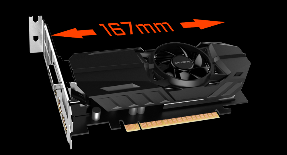 Nízkoprofilový dizajn s dĺžkou karty 167 mm šetrí viac priestoru a zapadne do tenkého alebo menšieho systému.