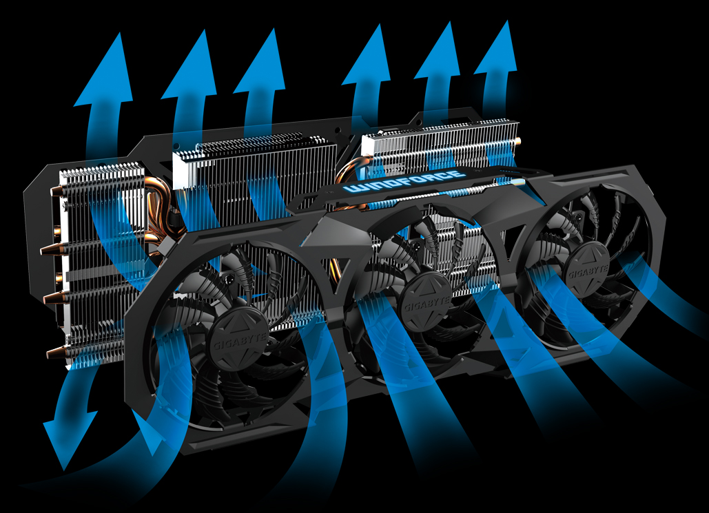The WINDFORCE 3X cooling system features three 80mm unique blade fans, 4 pure copper composite heat-pipes and heat pipe direct touch technology, together delivering an effective heat dissipation capacity for higher performance at lower temperatures.
