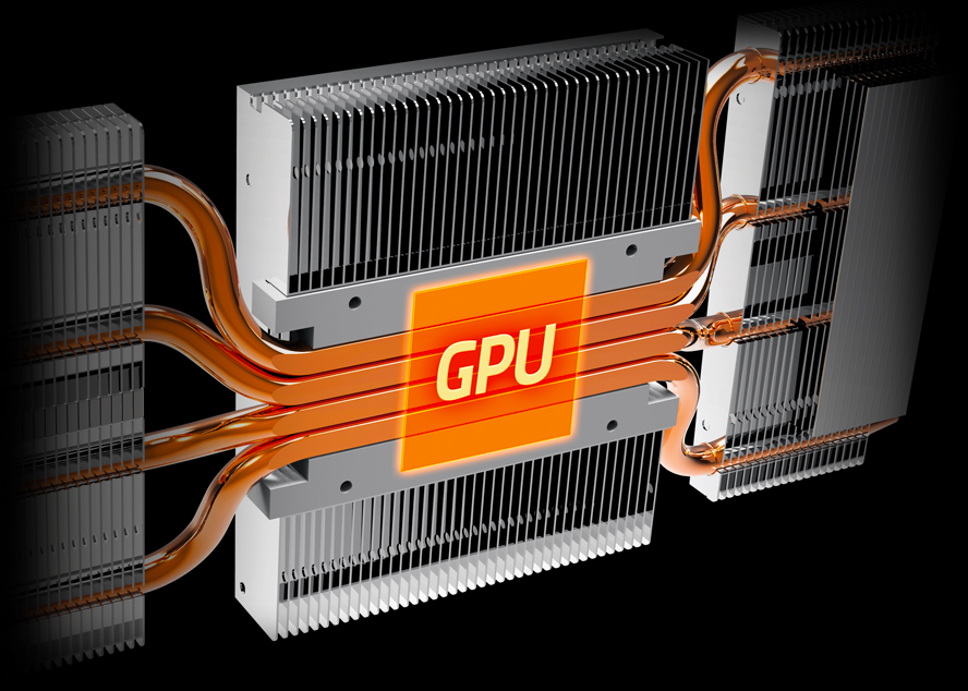 The pure copper heat pipes are shaped to maximize the direct contact area to the GPU