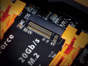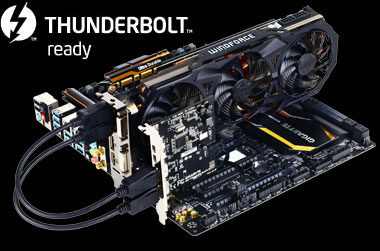 เมนบอร์ด GIGABYTE X99 มาพร้อมสุดยอดระบบการเชื่อมต่อระดับแนวหน้า ที่ให้ประสิทธิภาพระดับสูง เรียกว่า GIGABYTE Thunderbolt™ add-in card. โดย Thunderbolt™ controller จะให้ bandwidth ที่สูงถึง 20 Gb/s, เร็วกว่าแบบเดิมที่ให้ความเร็วในระดับ 10 Gb/s. ช่วยทำให้การโอนถ่ายข้อมูลมีความเร็วแบบไม่น่าเชื่อ เมื่อมีการใช้อุปกรณ์จัดเก็บข้อมูลที่มีประสิทธิภาพสูง นอกจากนั้นยังรองรับ daisy-chaining สูงสุดถึง 12 อุปกรณ์ และรองรับมอนิเตอร์ในแบบ triple digital display อีกด้วย