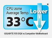 GIGABYTE Ultra Durable 2 motherboards enjoy on average a 33°C cooler CPU zone temperature than most competing motherboards. Cooler temperatures mean greater system stability, less wear and tear on your motherboard (less PCB warping and heat related damage) and longer component lifespan. |