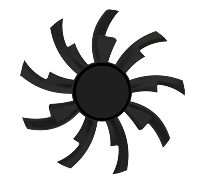 GIGABYTE "Alternatif Eğirme", üç fanın türbülanslı hava akışını çözebilen tek çözümdür: Üç fanın en büyük problemi türbülanstır. Fanlar aynı yönde döntüğü için, hava akışı yönü fanların arasındadır. Türbülanslı hava akışına neden olur ve ısı yayma verimliliğini azaltır GIGABYTE ortadaki fanı ters yönde çevirir, böylece iki fan arasındaki hava akışı yönü aynıdır, bu da türbülansı azaltır ve hava akış basıncını arttırır.