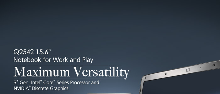 The Q2542 has an excellent NVIDIA® GeForce® GT 640M graphics processor that supports DirectX 11 and comes with 2G VRAM to provide 16% better performance.* The result is a fantastic visual experience for multimedia and games. It also supports NVIDIA® Optimus™ technology, which intelligently provides outstanding graphics performance only when needed, extending battery life for longer enjoyment.