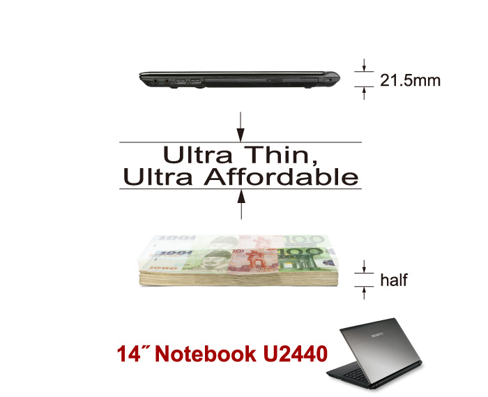 The U2440 has a built-in Super-Multi ODD in a thin form factor body which is close to Ultrabook™ regulation and weighs less than 2kgs. This ultimate design provides a perfect balance for mobility and practicability.