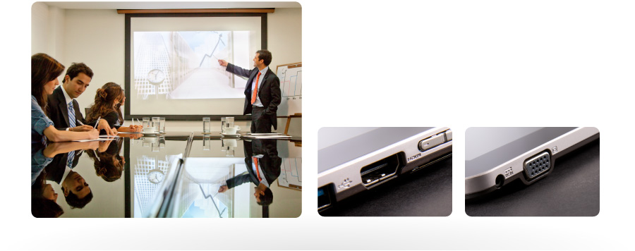 Designed with well rounded I/O ports including fixed standard D-sub and HDMI, S11M can be connected to any external display for sharing movies or business presentations without any extension cable needed.
