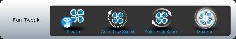 Fan Tweak tailors your fan speed to different user scenarios, striking a perfect balance between system stability and needs for tranquility. 4 customizable modes offers for all-condition tweak options. Max Fan Mode effectively cools the chassis, lowering the operation surface up to 12°C!