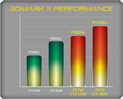 P37X features a NVIDIA® GeForce® GTX 980M GDDR5 8GB, capable of P10,000+ in 3DMark 11*, ensuring users a solid edge over the competition. Battery Boost 2.0 delivers an uncompromised gaming experience with 30% extra battery life at frame rate. Dynamic Super Resolution (DSR) upscales the native 1080p to 4K resolution for upgraded viewing pleasure.