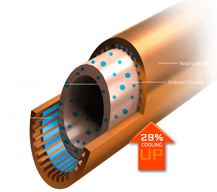 Kompozit ısı boruları, iki katı arayüz arasındaki ısı transferini etkin bir şekilde yönetmek için hem termal iletkenliği hem de faz geçişini birleştirir ve bu da soğutma kapasitesinin% 29'unu arttırır.