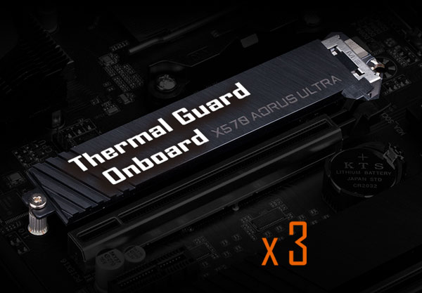 三組搭載散熱裝甲的NVMe PCIe4.0 M.2 插槽設計