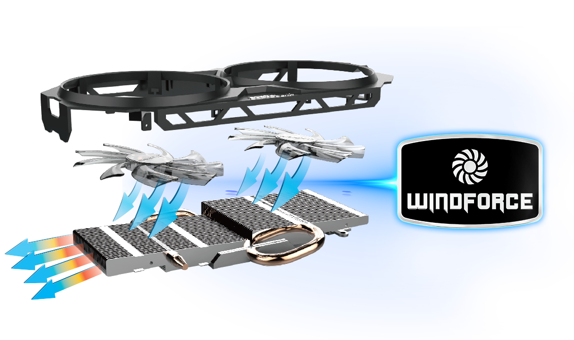 技嘉科技風之力雙風扇散熱系統,為達到極靜、極冷、極致效能的顯示卡終極目標,不斷突破創新,提供所有玩家最佳的風之力雙風扇散熱系統。
