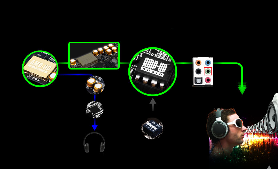 ![]() How does GIGABYTE AMP-UP Audio™ Technology work? Studio-Class Nichicon Pro Audio Capacitors