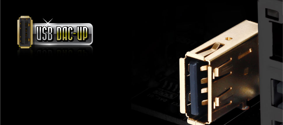 Digital-to-Analog converter Featuring a gold plated USB 2.0 port, GIGABYTE USB DAC-UP provides clean, noise-free power delivery to your Digital-to-Analog Converter. DACs can be sensitive to fluctuations in power from the other USB ports, which is why GIGABYTE USB DAC-UP takes advantage of an isolated power source that minimizes potential fluctuations and ensures the best audio experience possible.