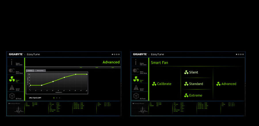 As well as offering more system fans than ever before, GIGABYTE 8 Series motherboards feature updated and improved CPU and system fan speed controls, with individual airflow and speed settings available via a dedicated digital controller. GIGABYTE Smart Fan 2 allows you to configure CPU fans and system fans.