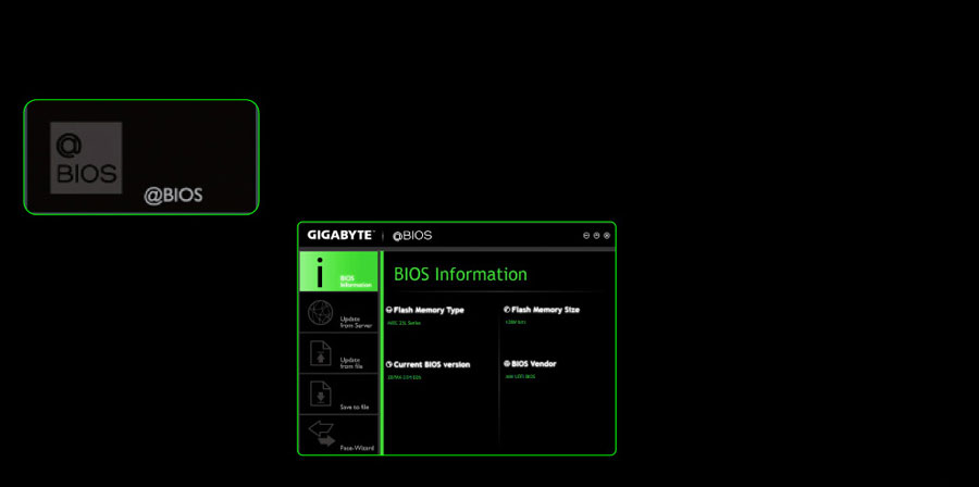 The new and updated GIGABYTE @BIOS app allows you to update your system's BIOS from within Windows using a simple and slick graphical user interface by automatically downloading the latest version from the GIGABYTE servers.