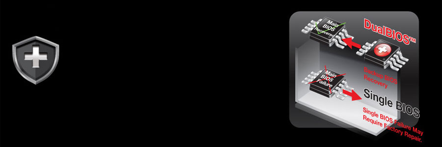 GIGABYTE motherboards feature GIGABYTE DualBIOS™, an exclusive technology from GIGABYTE that protects arguably one of your PC's most crucial components, the BIOS. GIGABYTE DualBIOS™ means that your motherboard has both a 'Main BIOS' and a 'Backup BIOS', making users protected from BIOS failure due to virus attack, hardware malfunction, improper OC settings or power failure during the update process. Ultra Safe