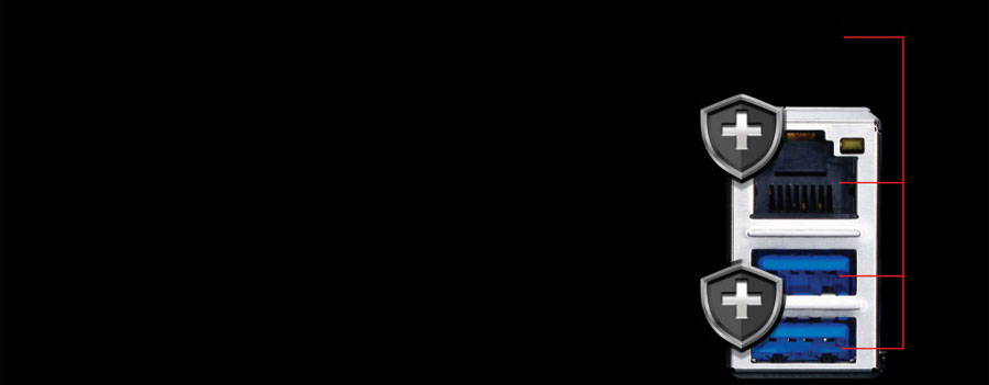 ![]() GIGABYTE 8 Series motherboards raise the bar in terms of protecting your system, providing advanced electrostatic discharge (ESD) protection for both your Ethernet LAN and USB ports, both common sources of ESD-related failures. Each LAN and USB port is paired with a dedicated protection filter that can withstand high electrostatic discharges, protecting your system from common electrical surges and even direct lighting strikes.