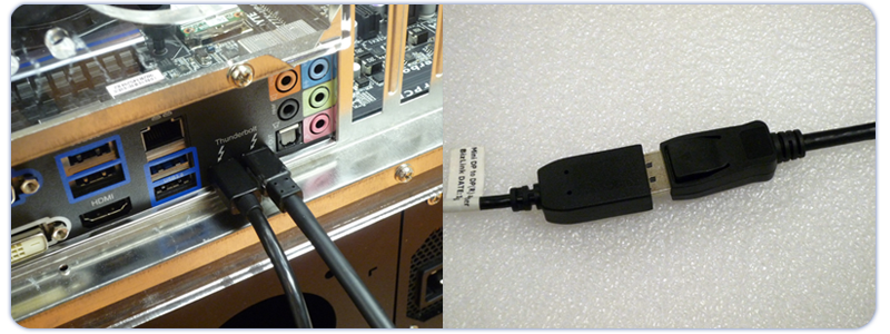 Đầu tiên, kết nối 2 dây cáp màn hình vào cổng mini-display trên bo mạch chủ. Mỗi dây cáp màn hình sau đó kết nối vào bộ chia.