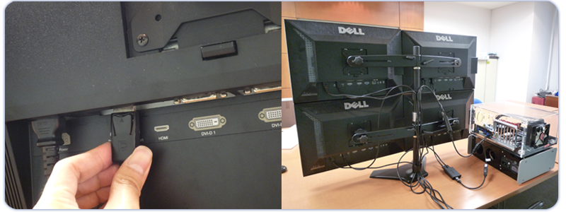 | 3. Màn hình HD - Bốn màn hình hỗ trợ độ phân giải 1920x1200 hoặc 1900x1080 với giao diện DisplayPort. Đối với Intel Collage ở chế độ Vertical, bạn cũng có thể yêu cầu giữ 4 màn hình ở cùng 1 vị trí. |