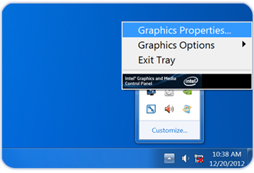 Sau khi cài đặt, bạn sẽ thấy Intel Graphics and Media Control Panel ở góc dưới cùng bên phải của màn hình. Nhấp chuột phải vào biểu tượng và chọn Graphics Properties. Đây là phần mềm được sử dụng để kiểm soát và cấu hình các trình điều khiển Intel®Collage. |