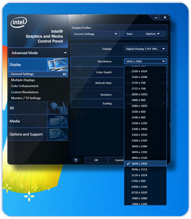 Đây là một driver đặc biệt được phát triển bởi Intel và GIGBAYTE cho phép bạn tạo ra một độ phân giải UltraHD 4K (3840 x 2400 pixel) trên máy tính để bàn thông qua 4 màn hình chuẩn HD. Bạn có thể tải về các trình điều khiển Intel® tại website của GIGABYTE:http://www.gigabyte.com/ |