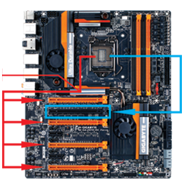 Optimized support for AMD CrossFire™ in 4 way configurations plus support for NVIDIA SLI technology in 2-way setups. This extreme design allows a more optimized multiple-card overclocking experience where the first 3 slots have the data bandwidth available from trace paths direct from the CPU and the fourth slot taking PCIe lanes from the Intel® Z87 PCH. |
