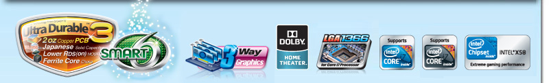 24 phase power, Ultra Durable 3, Dynamic Energy Saver 2, ATI CrossFireX, SLI,