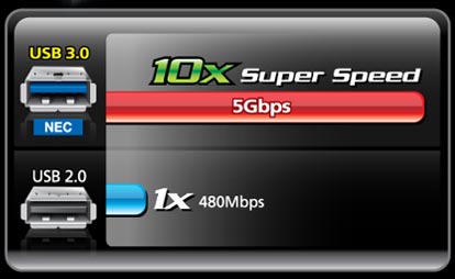 Al usar la nueva generación de Interfaz SuperSpeed USB 3.0 de NEC, con una transferencia 10x mayor a la del USB 2.0, la interfaz USB 3.0 es capaz de realizar transferencias dual-simplex al mismo tiempo de la PC al USB para mejorar la eficiencia en la transferencia de los datos