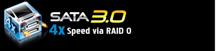 Duplica el rendimiento de tu disco duro con la revisión SATA 3.0 (SATA 6Gbps) de Marvell®, la última generación de la interfaz de almacenamiento. Junto con el modo RAID 0 (Stripe), la Revisión 3.0 de SATA habilita un incremento en el rendimiento de las transferencias de 4x en comparación con la Revisión 2.0 de SATA