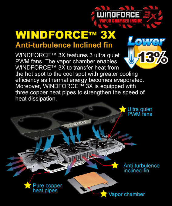 | ‧GIGABYTE WINDFORCE™ 3X Cooling Design |