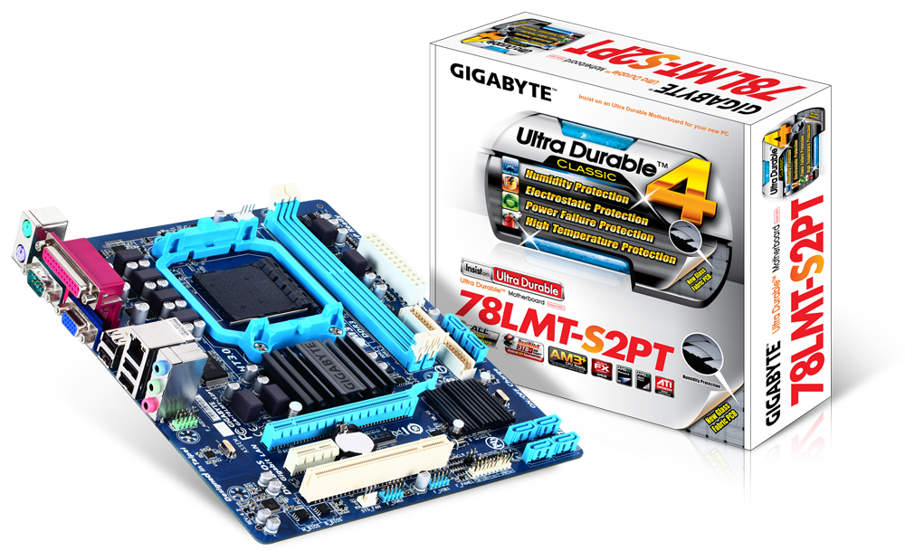 The 78LMT-S2PT motherboard is designed to offer a stable, high-speed platform for delivering amazingly fast data transfer via revolutionary GIGABYTE Ultra Durable technology. Based on AMD 760G chipset, the 78LMT-S2PT supports the latest 45nm AMD AM3 Phenom II/ Athlon II processors, integrated DDR3 memory controller, HyperTransport™ 3.0 technology links and PCI Express 2.0 graphics interfaces for ATI Hybrid CrossFireX support. The 78LMT-S2PT is able to provide user friendly computing, reach the maximum system performance easily while still able to save the power and environment in real life at the same time.