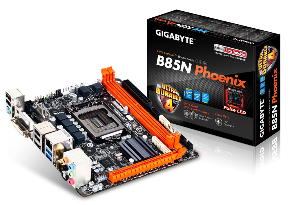 The GIGABYTE GA-B85N Phoenix is equipped with exclusive Pulse LED lighting on the underside of the PCB, providing a signature look for any custom PC build. The soft-glowing orange lighting elegantly phases in and out during system operation, bringing to life the GIGABYTE B85N Phoenix. Controllable through BIOS, users have 3 options including "Always On", "Off" or "Pulse" mode. -