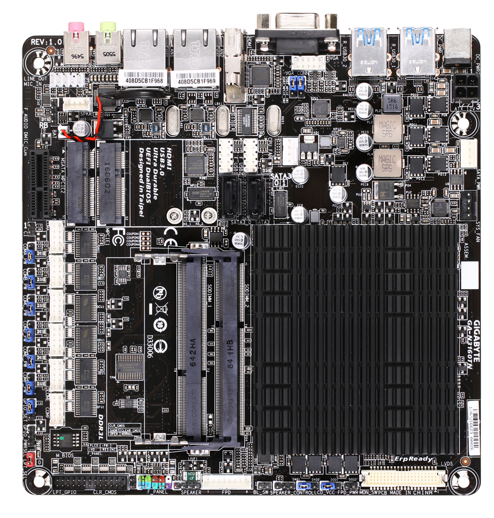 GIGABYTE N3160TNThe GIGABYTE N3160TN Thin Mini-ITX motherboard is a fully integrated PC/AIO/IPC motherboard featuring the Intel® Celeron™ N3160 quad-core processor. Designed for compact, small form factor PC/AIO/IPC systems and devices, the GIGABYTE N3160TN is entirely fanless, making it ideal for always-on, mission critical systems, as well as noise-sensitive digital entertainment systems.