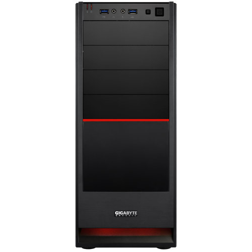 Luxo X10, GIGABYTE’s right side installation chassis, features a neutral black appearance which adds an air of sophistication. The right side installation benefits users by supporting long VGA card and eliminating cable length restriction. PSU is positioned at the bottom lowering the center of weight. Plus the two USB 3.0 ports at the front for easy access and up to 6 cooling fans providing excellent cooling solution.