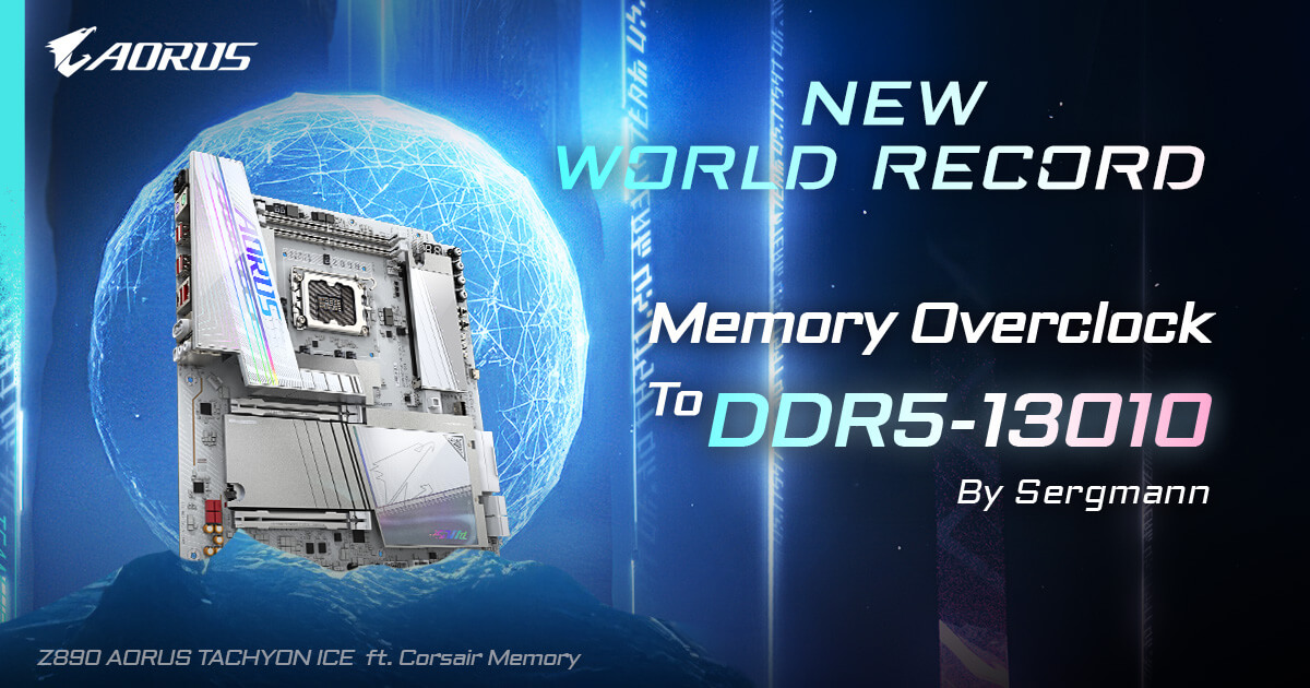Z890 AORUS TACHYON ICE Shatters DDR5-13010 World Record and Holds Top Three Global Records