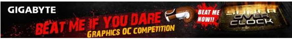 Taipei, Taiwan, 29th October, 2009 – GIGABYTE, a leading manufacturer of motherboards and graphics cards, announces a very first graphics card concentrated overclocking online competition Beat Me If You Dare which was never been held in the industry. The round one competition has been coming down to the crunch time. GIGABYTE GTX 260 Super Overclock Edition’s performance has been fully disclosed in the competition. The world’s record of NVIDIA GTX 260 has been refreshed and beaten many times. The GTX 260 overclocking capability has been ascending climb to a new high. Last call for uploading your ultimate score into Event Website! Beat Me If You Dareround one is due on 0:00 1st November, Taipei Time. Also, we look forward to a surprising score in the end of round one competition.