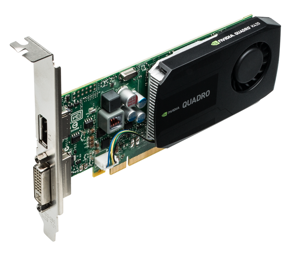The NVIDIA Quadro K420 delivers power-efficient 3D application performance and capability. 1 GB/2 GB of DDR3 GPU memory with fast bandwidth enables you to create complex 3D models, and a flexible single-slot and low-profile form factor makes it compatible with even the most space and power-constrained chassis. Plus, an all-new display engine drives up to four displays with DisplayPort 1.2 support for ultra-high resolutions like 3840x2160 @ 60 Hz with 30-bit color. Quadro cards are certified with a broad range of sophisticated professional applications, tested by leading workstation manufacturers, and backed by a global team of support specialists, giving you the peace of mind to focus on doing your best work. Whether you’re developing revolutionary products or telling spectacularly vivid visual stories, Quadro gives you the performance to do it brilliantly.