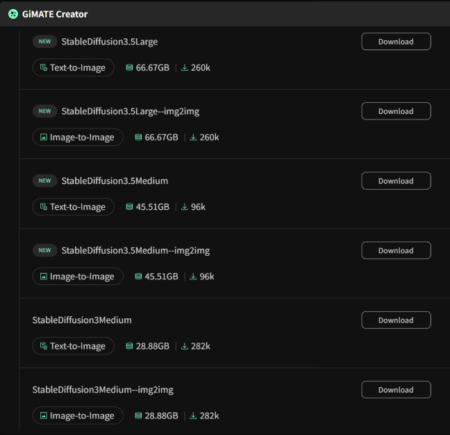 На текущий момент GiMATE Creator работает только с утвержденными моделями, чтобы гарантировать оптимальную производительность, совместимость и удобство использования. Официально поддерживаются следующие модели: