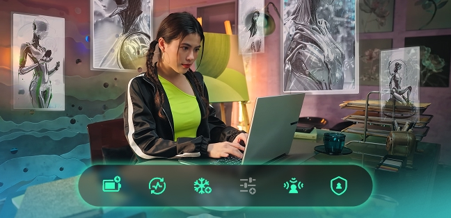 Скажите, что вам нужно, и GiMATE мгновенно отреагирует. Управлять ноутбуком так же просто, как и общаться с собеседником.