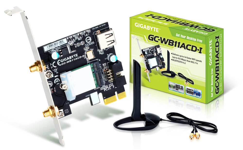 GC-WB11ACD-I is an exclusive PCIe expansion card that offers support for 1x1 802.11ac Dual Band WIFI and BLUETOOTH 4.2 connectivity.