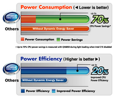 Dynamic Energy Saver de GIGABYTE es una revolucionaria tecnología que ofrece ahorros de energía sin precedentes con el simple click de un botón. Compuesta de avanzado hardware y software propietario, Dynamic Energy Saber de GIGABYTE es capaz de proveer ahorros excepcionales de hasta 70% y con una mejora de hasta 20% en el consumo energético sin sacrificar el rendimiento de tu PC...más - Intel® P35 Express Chipset