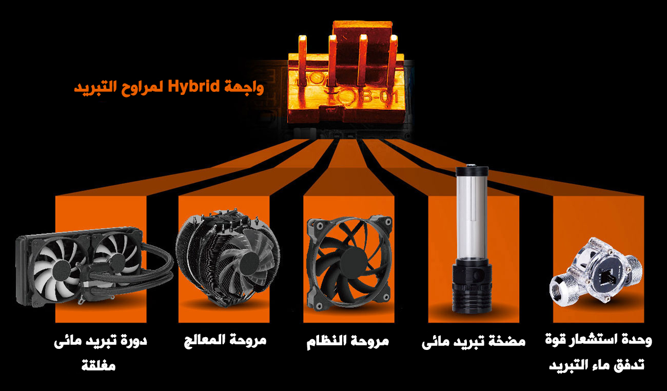من خلال استقبال تقنية Smart Fan 5 لمعلومات محدثة أولاً بأول عن معدل تدفق ماء التبريد ودرجة حرارته و ذلك عبر واجهات Hybrid ، يصبح المستخدم فى موقع التحكم التام فى نظام التبريد و فى حاسبه الشخصى بشكل عام.