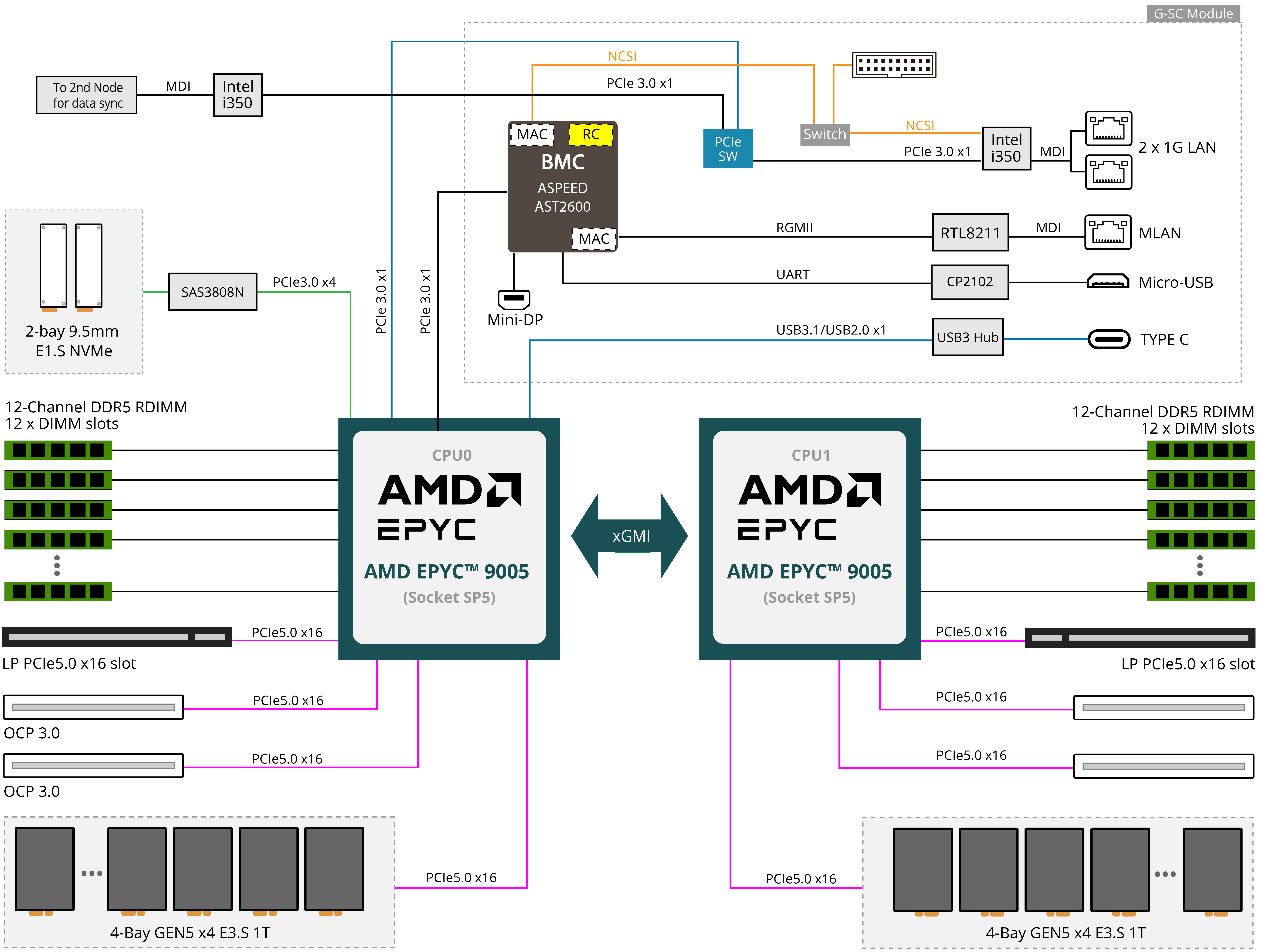 2 x OCP NIC 3.0 SFF (Gen5 x16), from CPU_0