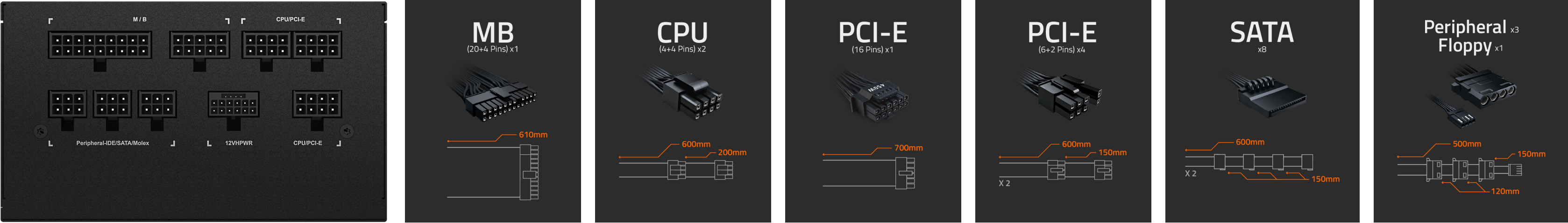 The +12V can provide a total of 750W power output. The 16-pin cable (+12VHPWR) can provide up to 450 watts of power to the latest PCIe Gen 5.0 graphics card.