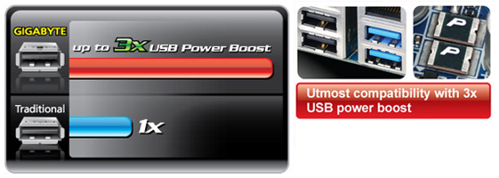 The GIGABYTE motherboards support the latest generation SuperSpeed USB 3.0 technology made possible through an onboard USB3.0 host controller. With superfast transfer rates of up to 5 Gbps, users are able to experience an almost a 10x improvement over USB 2.0. Additionally, backwards compatibility with USB 2.0 assures users of long term use of their legacy USB 2.0 devices. The onboard SuperSpeed USB 3.0 technology also provides new power management features that include increased maximum bus power and device current draw to better accommodate power-hungry devices.