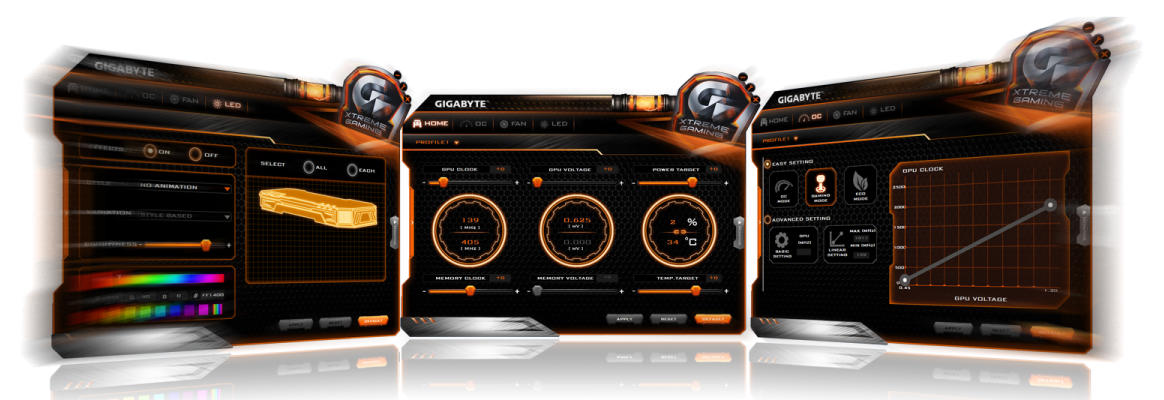 XTREME Engine is a newly developed utility that provides gamers with a total control of their GIGABYTE graphics card. Via its intuitive interface, clock speeds, voltage, fan profiles, power target, and LED illuminations could be easily managed and customized.