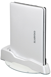 The Booktop M1022 is equipped with a 10.1-inch LED backlight screen and the docking station exclusively from GIGABYTE. By connecting the M1022 to this docking station which is also a battery charger, users can turn the M1022 into a desktop and recharge the battery of the Booktop. Looking like a book that does not occupy much space with its slim appearance, the M1022 is a fashionable home accessory equipped with a 92% full-scale keyboard with 17.5 mm key pitch to deliver a comfortable typing experience. The M1022 also supports the 3.5G HSDPA module for users to enjoy the fun of mobile networking. In addition to two options for screen resolution, the M1022 continues GIGABYTE’s modular design tradition for memory and hard drive upgrade and maintenance.