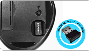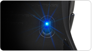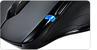 Sparen Sie Energie! Verlängern Sie die Batterielaufzeit mit einem einfachen Klick; viel umweltfreundlicher geht's nicht! Die durchdachte Platzierung der Ein-/Austaste an der Oberseite macht es kinderleicht, die Maus ganz intuitiv ein- und auszuschalten. - GIGABYTEs saphirblauer optischer Sensor