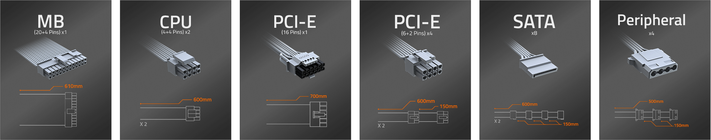 Connect only what’s required, and enjoy clean builds with flexible embossed cables designed for smooth routing and hassle-free cable management.