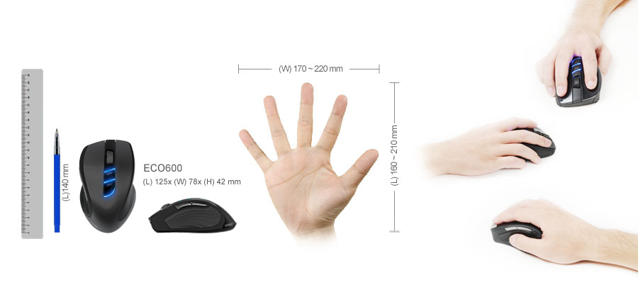 With the advanced energy-saving technology, ECO600 can reach up to 12-month battery life with two AA batteries. No more worries about batteries running low every now and then! - 800/1200/1600 DPI Adjustable