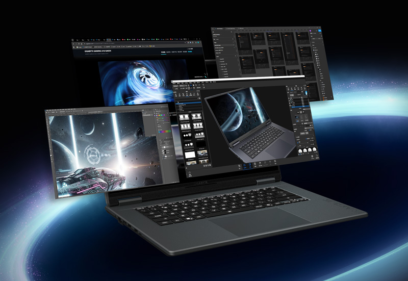Gear up with GIGABYTE EAGLE, the gaming laptop deliver EAGLE like Performance. It's equipped with the AMD Ryzen™ 5 Series processor and up to NVIDIA® GeForce RTX™ 40 Series Laptop GPU to deliver advanced gaming performance. WINDFORCE Cooling with 0dB Smart Adjustment and MUX Switch offers seamless flexibility between high-performance gaming and everyday productivity. The Golden Curve Keyboard, paired with a 180-degree lay-flat chassis, delivers an immersive, elevated user experience.